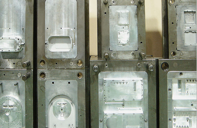 製品部分は製品形状ごとに製作が必要です。しかし成形機に金型を取付けるためのプレートなど、他の 金型と共用しても支障がないパーツがあります。