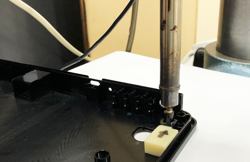 成形品への端子挿入、ポッティング作業、ゲートカットなど、品物に応じて成形後の仕上げ加工を行います。
