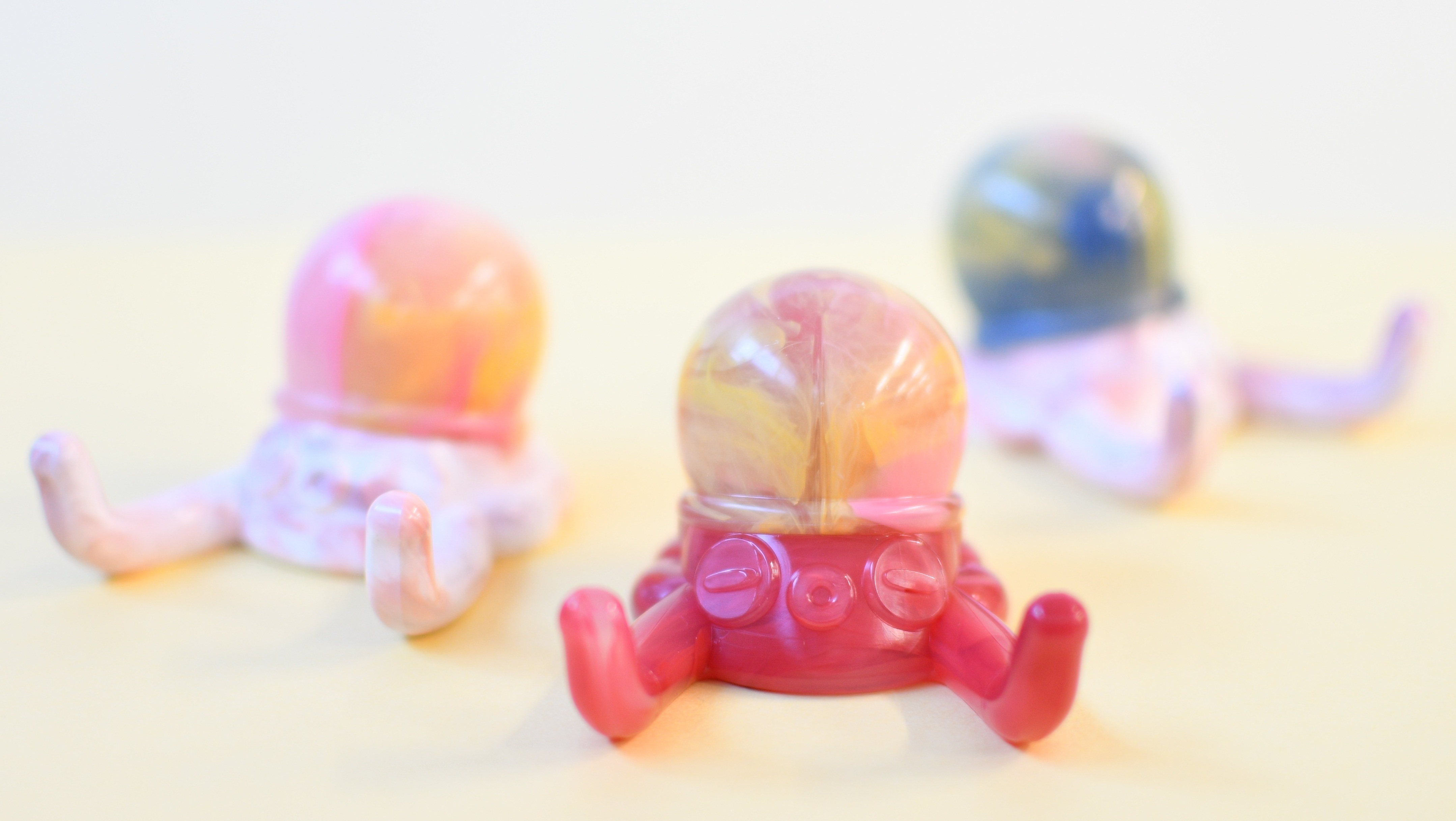 複数色の樹脂材料を使用して、世界にひとつだけのマーブル模様を生み出しています。 タコ1匹ずつの商品ページを作成しておりますので、気に入った色・柄のタコをお迎えください。