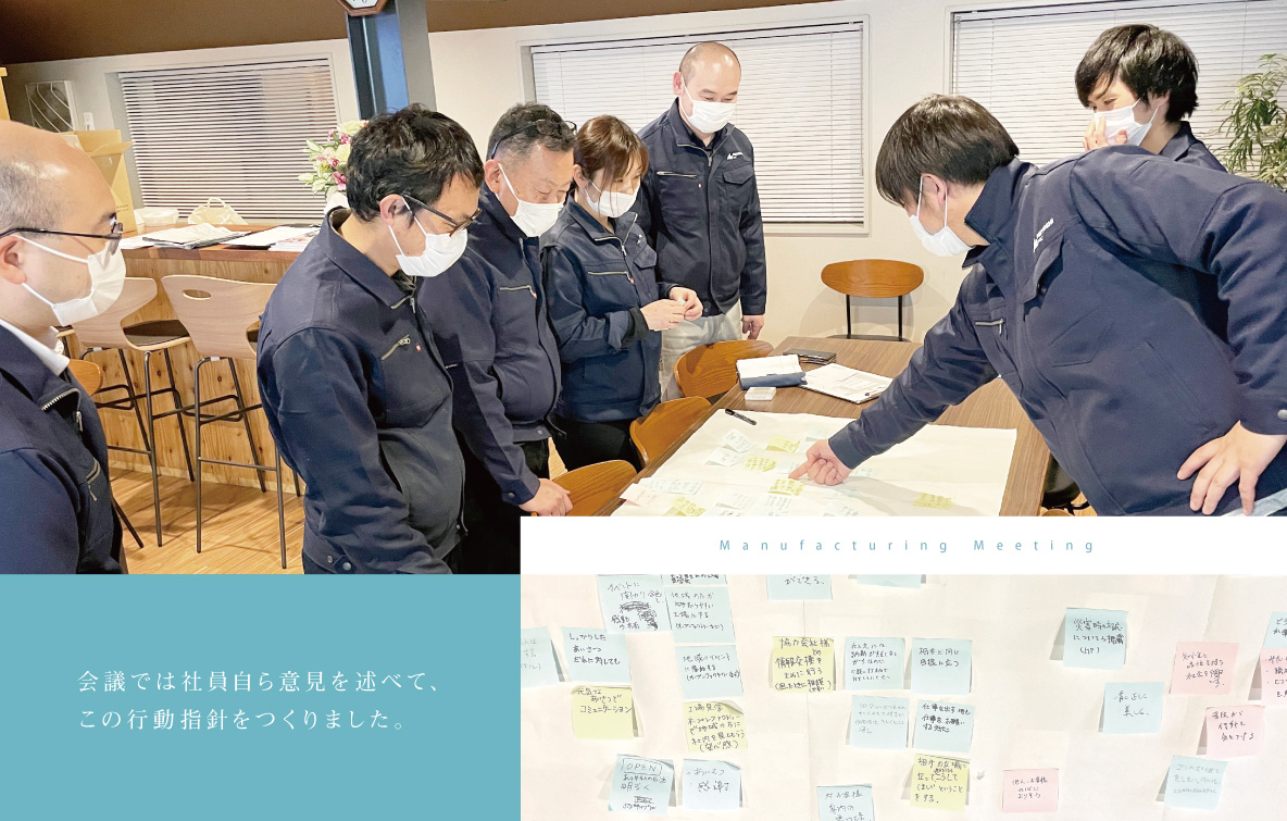 私たちは、お客様に喜ばれ、社会に評価されるようなものづくりをするために、以下のことを実施します。