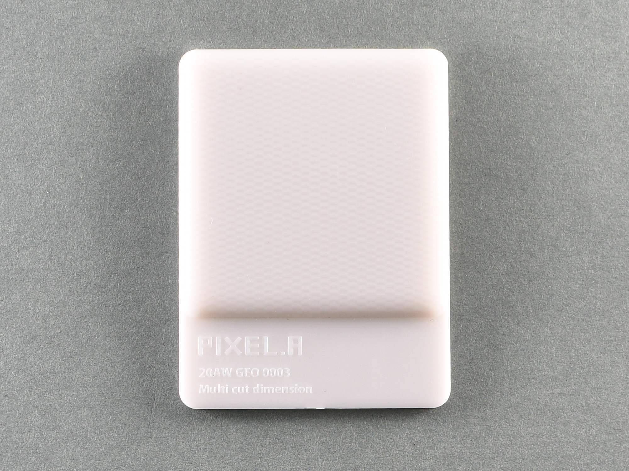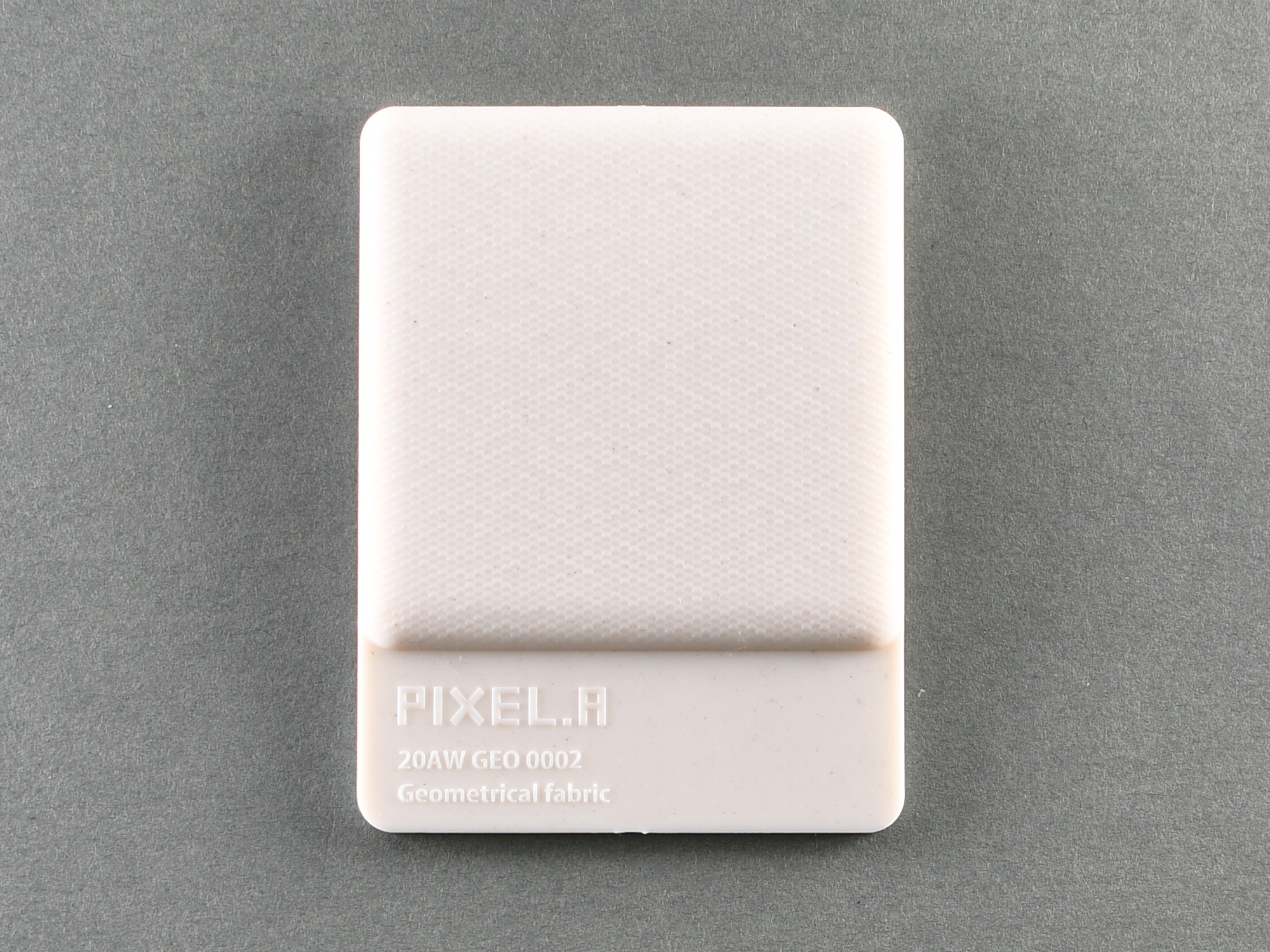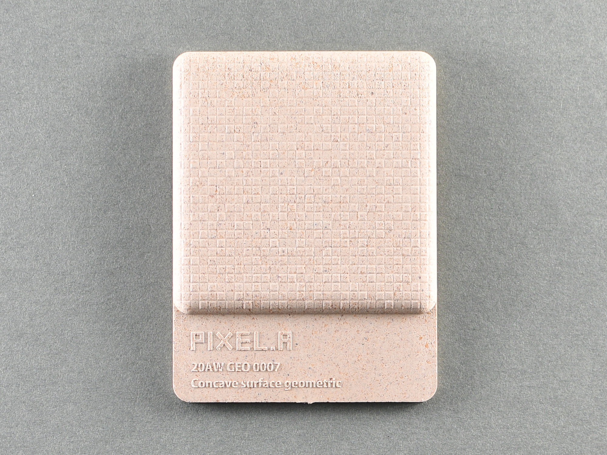海産物加工の際に廃棄されるカキ殻を配合したプラスチック。プラスチックに配合することで硬さが増す。質感はややマット。化石由来のプラスチックの使用量を減容することで燃焼時のCO2 排出量を抑えることができる。
