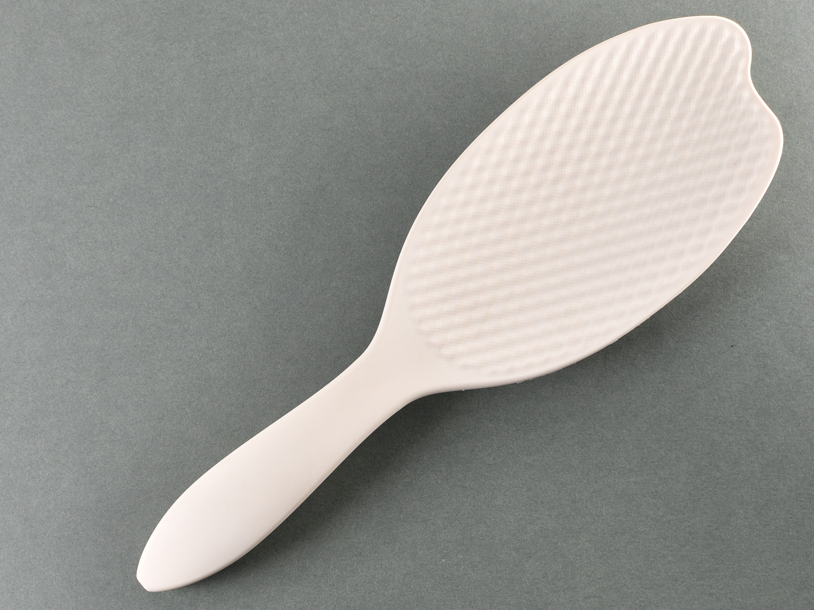 食用や飼料として使用されない「古米」や「破砕米」など、従来は廃棄されていたお米を有効利用した、お米由来の国産バイオマスプラスチック。質感はややマット。 成形時にはほんのりおせんべいを焼く香りがする。