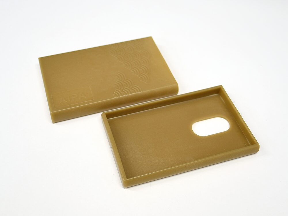 PP+パルプ20%配合樹脂で成形したスライド式カードケース。
